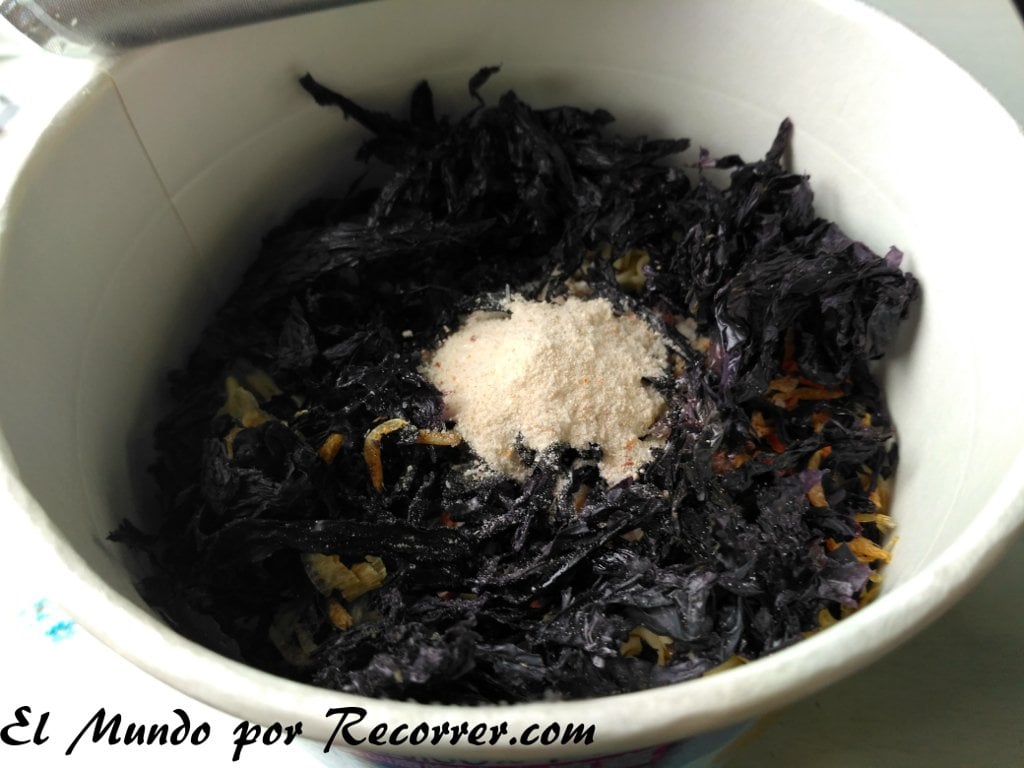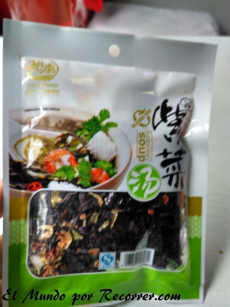 Sopa de algas que añadí a los noodle de gambas. Compré este sobre en un supermercado para darle más consistencia. Fue todo un acierto.
